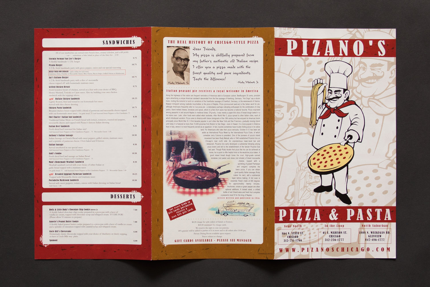 Next Previous Pizano’s Carry Out Menu by Kendall Bruns May 23, 2015 Leave a comment Pizza, Pizza Menus Chicago, Illinois, menu, Pizano's, pizza, pizza menu Pizano’s Carry Out Menu Pizano’s Pizza and Pasta Chicago, IL, circa 2010 4.5 in. x 8.375 in. U.S. Pizza Museum Collection Acquisition Date: 10/08/2012 ID: USPM0025 Share this: Click to share on X (Opens in new window) X Click to share on Facebook (Opens in new window) Facebook Like Loading... Posted by Kendall Bruns Trailsongs: Inspired by Our National Parks Songwriter / U.S. Pizza Museum Founder