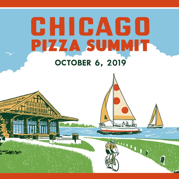 EVENT (10/6): The 4th Annual Chicago Pizza Summit takes place Sunday, October 6, 2019 at Theater on the Lake, with two sessions (2–5pm and 6–9pm). Both sessions will feature a U.S. Pizza Museum Pizza Box Art Contest.